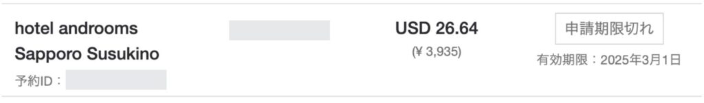 前回北海道旅行で、Agoda で予約&利用したホテルの宿泊代に、”キャッシュバック特典”というものがついてて割引価格だったのですが、宿泊後の申請が必要なことを忘れて、4000円程損していたことに気づいたのです 🤦♀️!