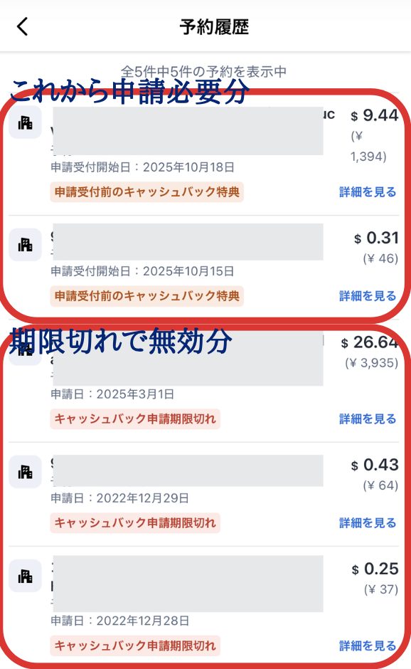 ということで、Agodaでよく出でくる、”キャッシュバック特典”の使い方と、申請期限過ぎた時の体験談について、今後の教訓としてまとめます。