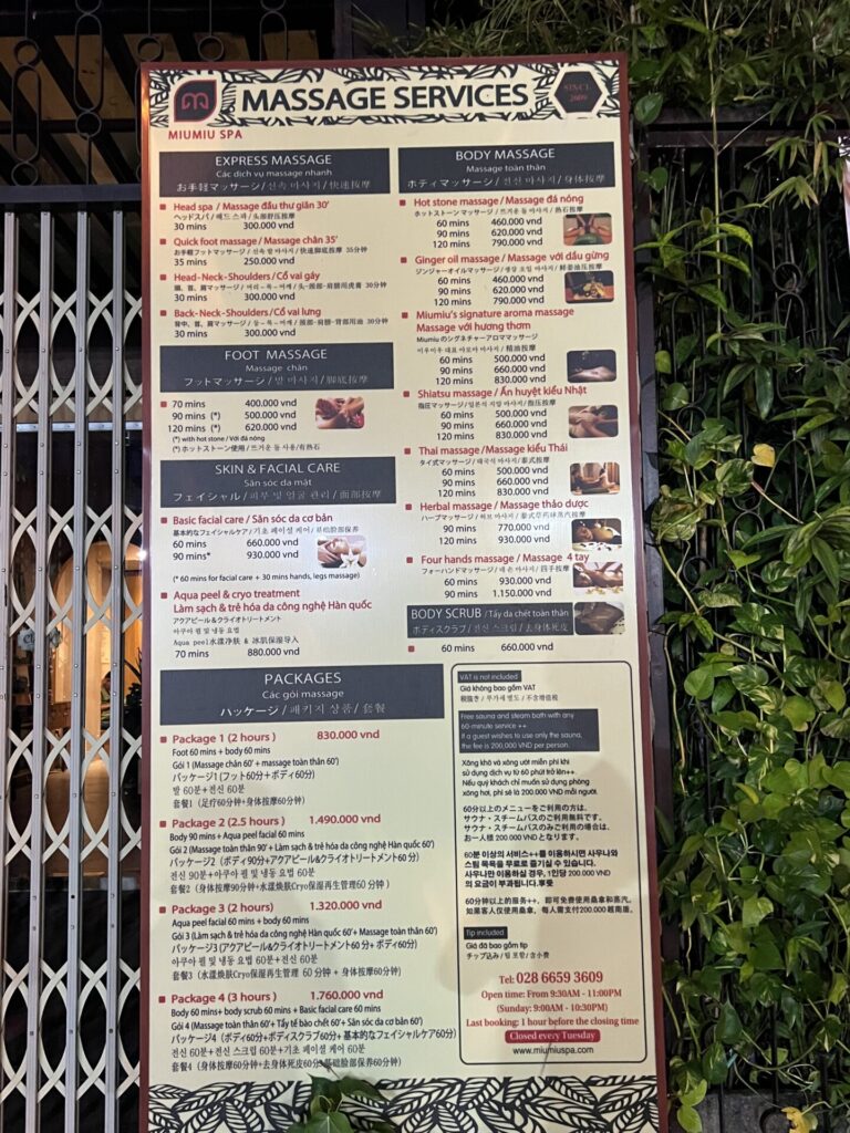 ホーチミンで日本人に人気の「MIUMIUスパ」。
