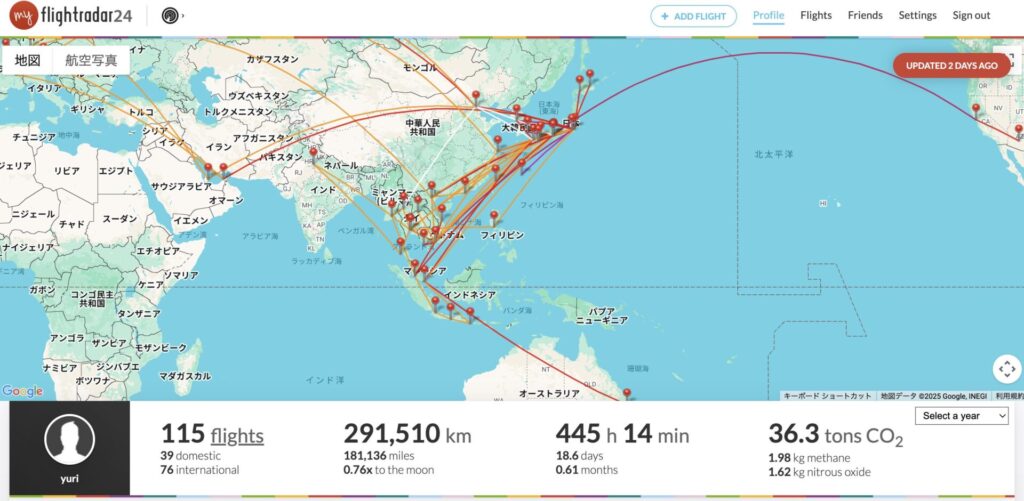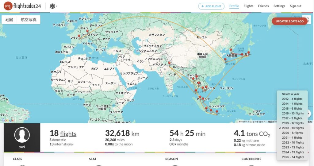 今回、私は 2012年のフライトまで遡って、これまでの渡航履歴を整理してみました。使ったのは Myflightleader という無料のフライト記録サービス。