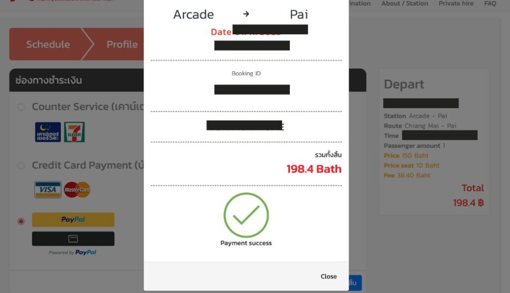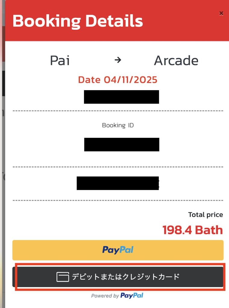 PREMPRACHA TRANSPORTのカスタマーサポートに問い合わせると、クレジットカード決済が弾かれてしまう場合は、Paypal払いを試してみてとのこと。メールアドレスに問い合わせても返信来なくて、Facebook Messengerから問い合わせると早く回答もらえました。