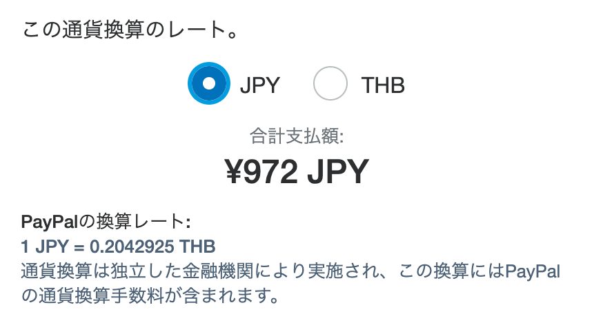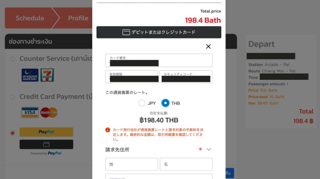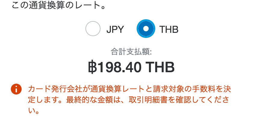 カード番号を入力すると、日本円払いか、タイバーツ払いか選択ができるようになります。