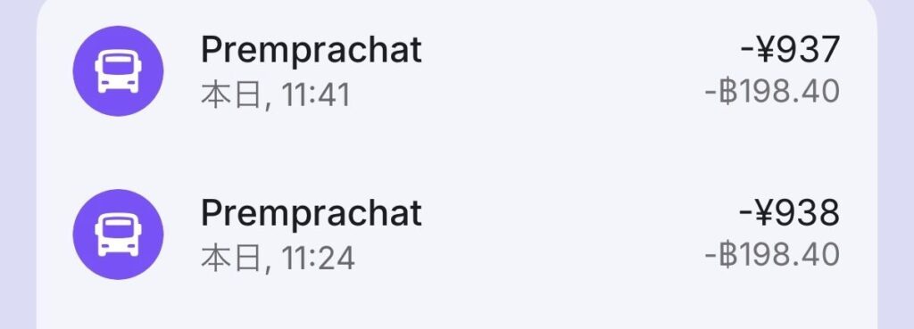 上記の結果から、タイバーツ支払いを選択した方がお得にできました。この選択の差だけで、往復で70円弱の節約。
