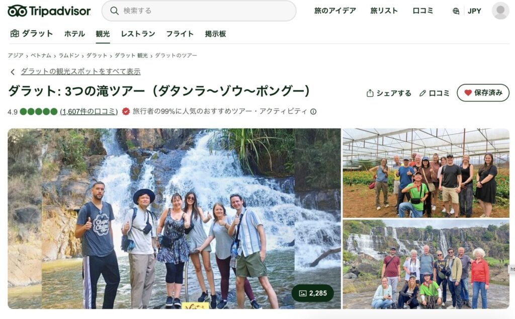現地ツアーを探すときは、トリップアドバイザーの口コミ確認&予約をすることが多いのですが、今回ダラットの1日ツアーで良さそうだと思ったのは、下記のツアーです。