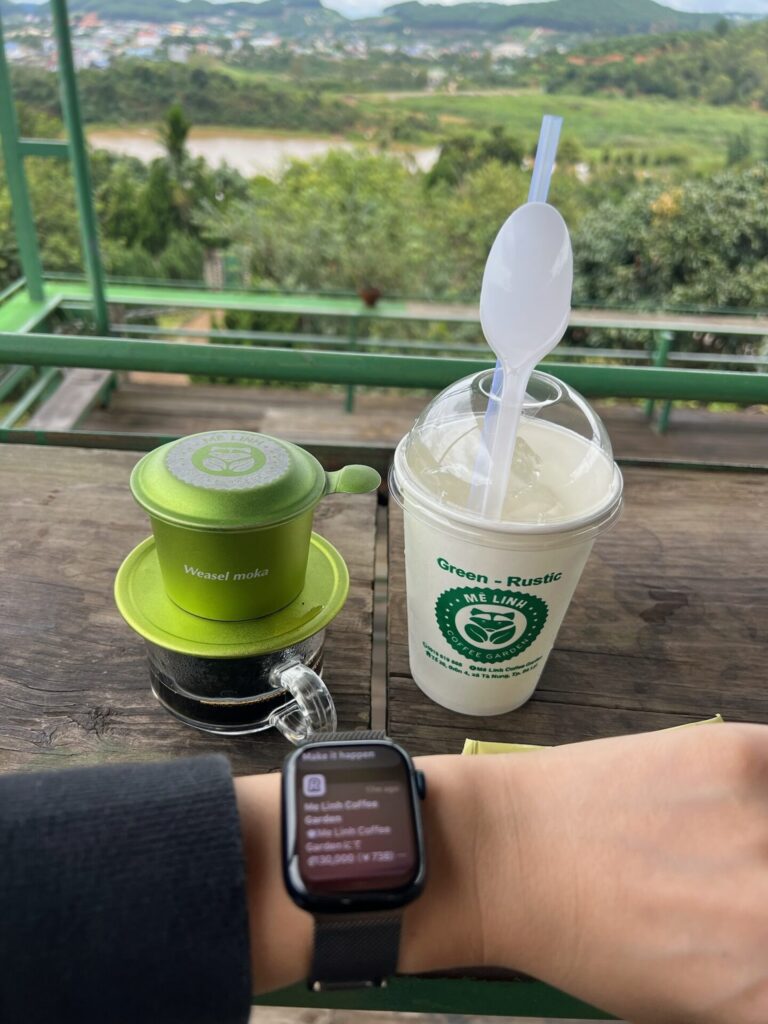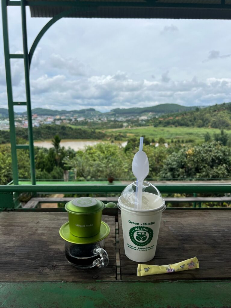 これよこれよ〜ダラットで、山景色を見ながら、ちょい高所で美味しいコーヒーをいただく。これがダラットでやりたかったアクティビティだ!近くから大音量のカラオケが聞こえてくるのに、ベトナムらしさを感じた。