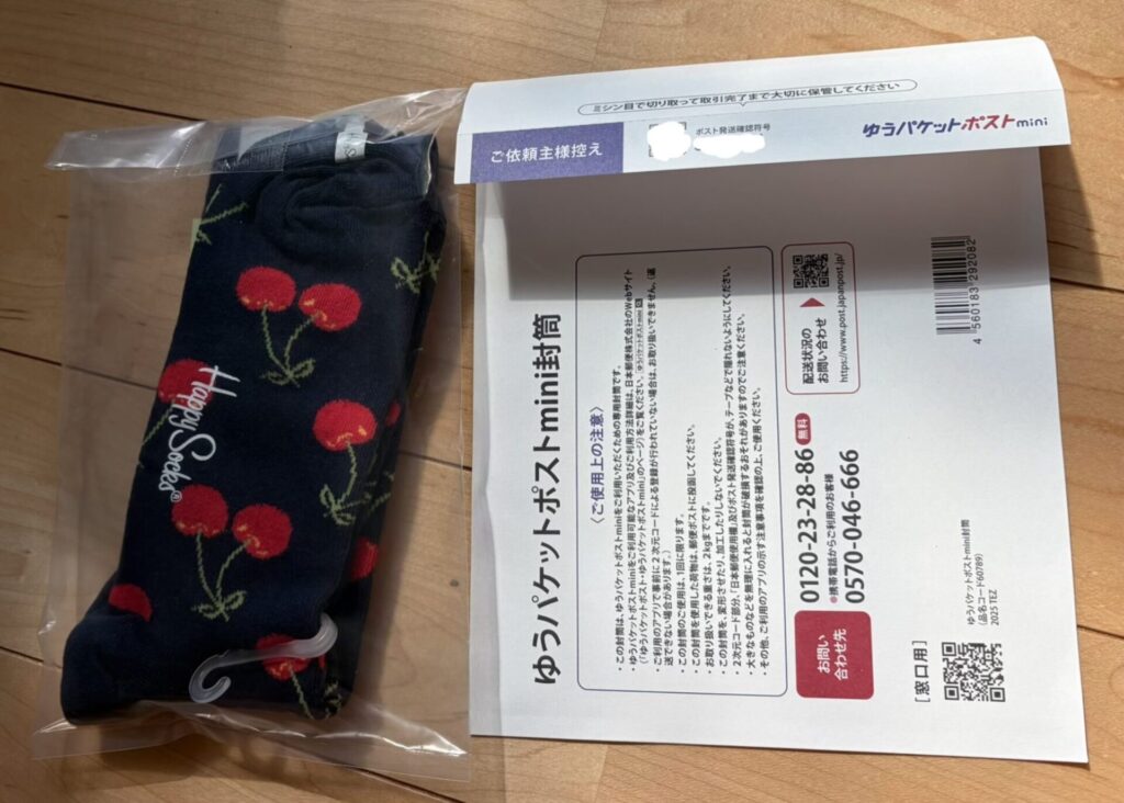 少し嵩張るタイプの靴下も、いい簡易に折り畳めば封筒に丁度入る大きさだったのでクリア!