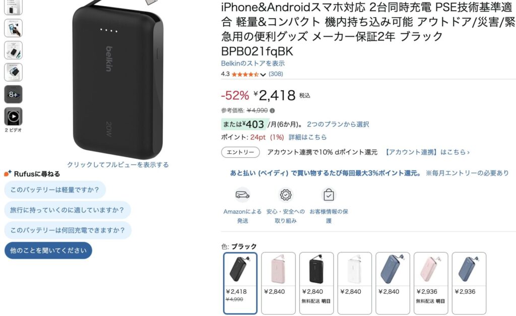 2024年夏にAmazonで購入し、先代のスマホiPhone13Proの弱ったバッテリーを補完してくれた相棒です。