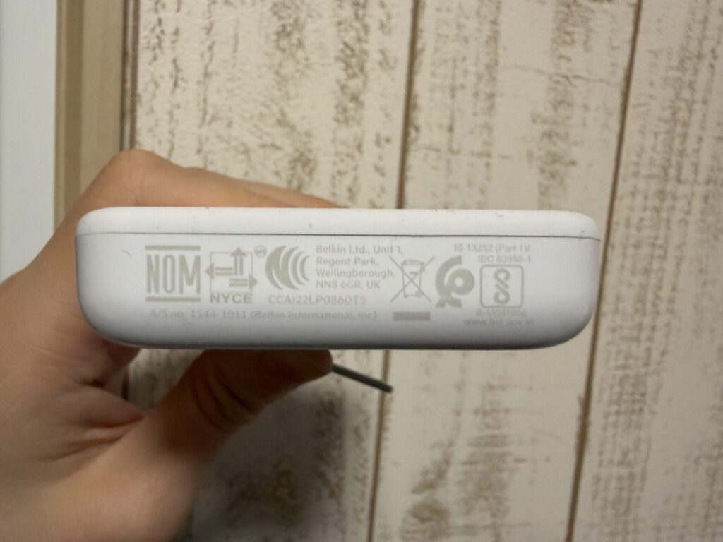 ベルキンのマグセーフモバイルバッテリー。購入時期が2024年の夏だったので、当然「3C認証」の存在を知らずに購入していました。