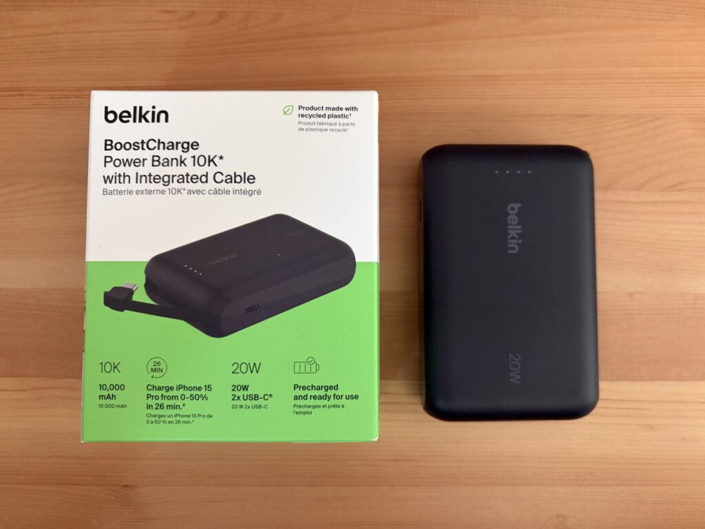 今回新しく購入した商品の正式名称は、ベルキンの「BoostChargePower Bank 10K with Integrated Cable」。3C認証マークがあって、中国国内線にも持ち込めたというAmazonのレビューがあり、没収の心配なく使えます。