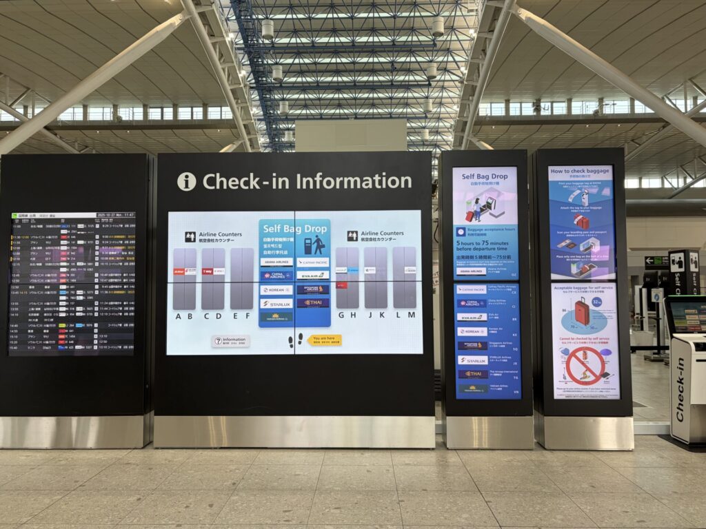福岡空港、まだ工事中の部分もありますが、改装されて、セルフチェックインやら設備も新そう。