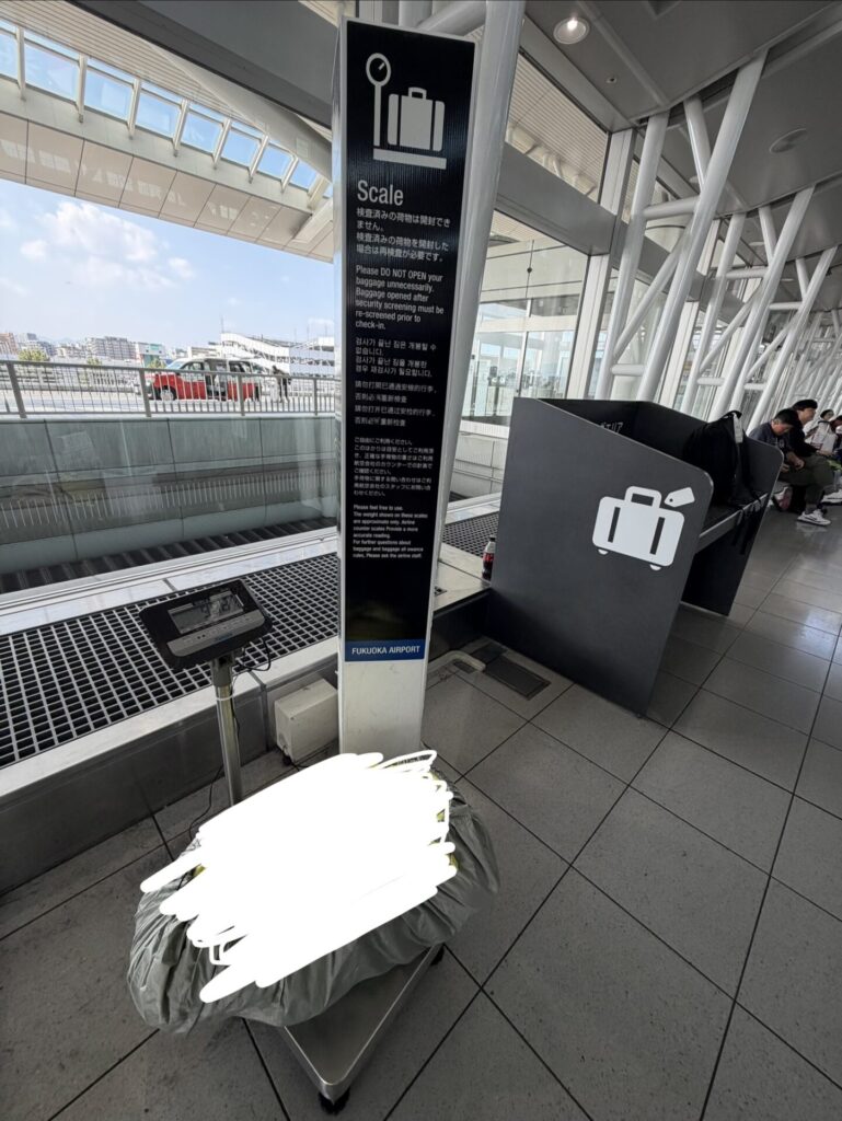 今回は福岡空港から国際線に乗る際に、飛行機チェックイン前に荷物を測れるかどうか、レポします。