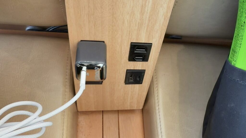充電設備めちゃあるし、コンセント、USB、Type-C揃ってる