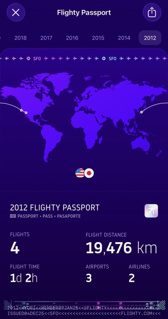 私の搭乗履歴、2012年からのデータがFlightyに反映されたことが確認できました!そして、一度アップしたデータは、Flighty無料プランに戻っても引き続き残ってくれてます。