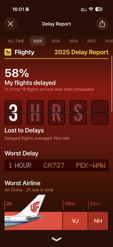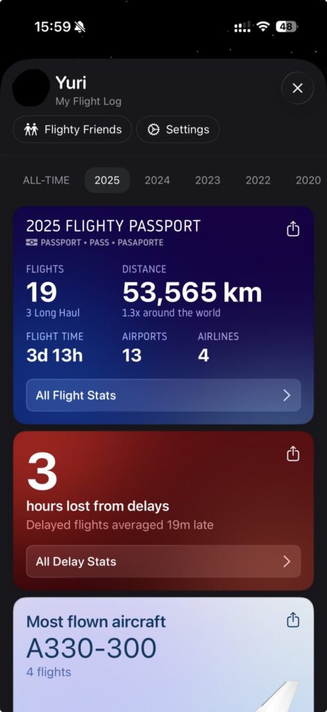 私の2025年のフライト記録はこんな感じ。