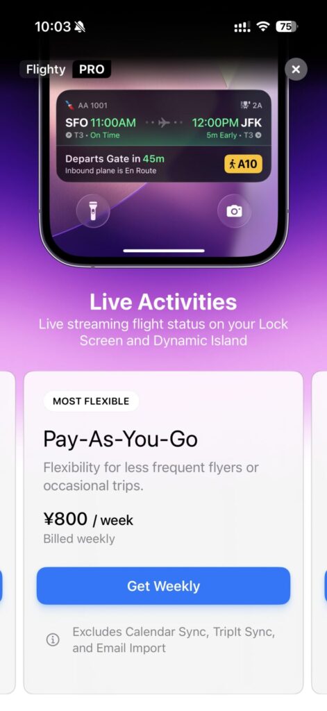 💰2025年12月時点、Flighty PROの1週間プランは800円