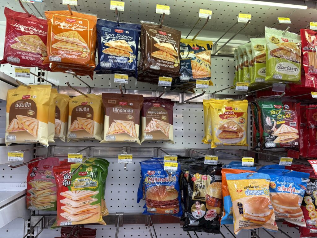 軽く空腹を満たせる、タイの定番スナック、セブンのホットサンドにした。