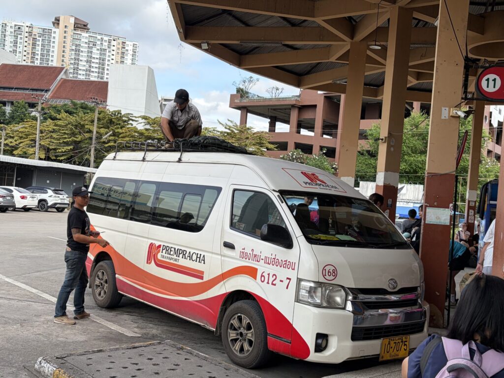チェンマイからパーイ行きの、「PREMPRACHA TRANSPORT」のミニバンは、チェンマイ第2バスターミナル(別名「Arcade」と呼ばれる)から乗車する。