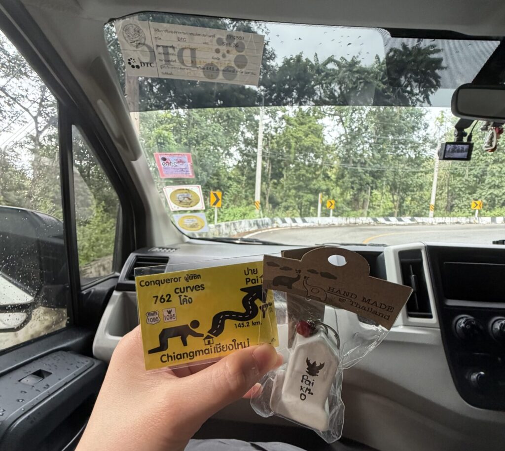 今回、チェンマイからパーイ行きは、762個カーブの山道で、別名「ゲロの道」と呼ばれるほど車酔いをしやすいことで有名な険しい道らしい。