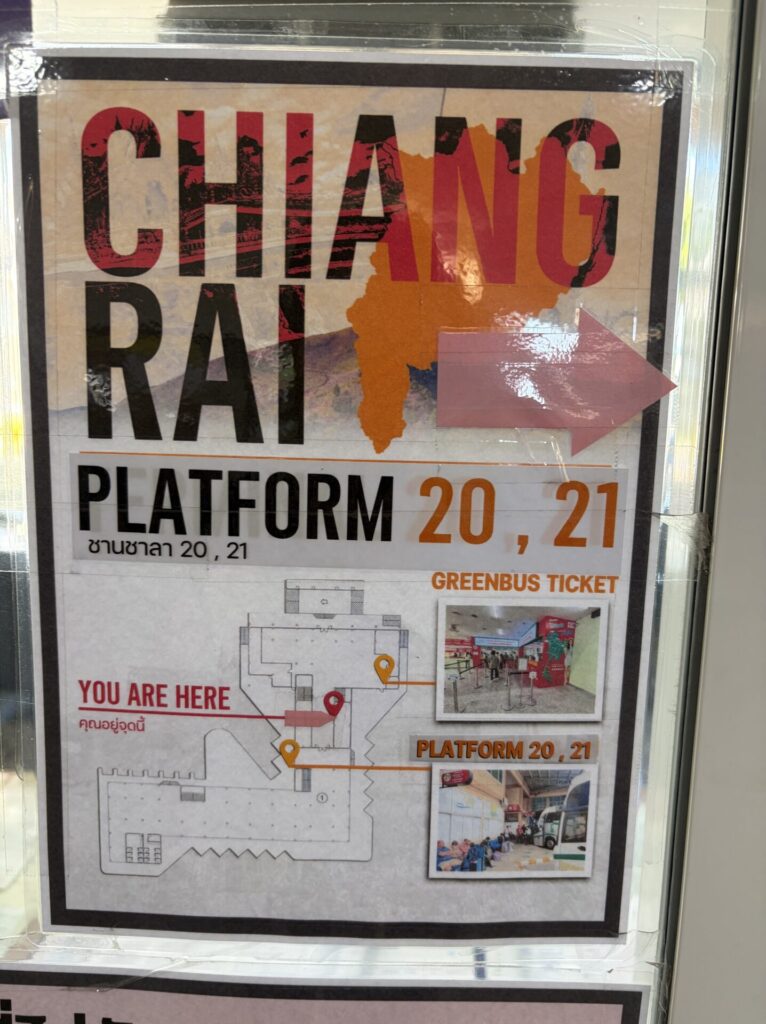 グリーンバスのチェンライ行きはプラットフォーム20・21から発車する