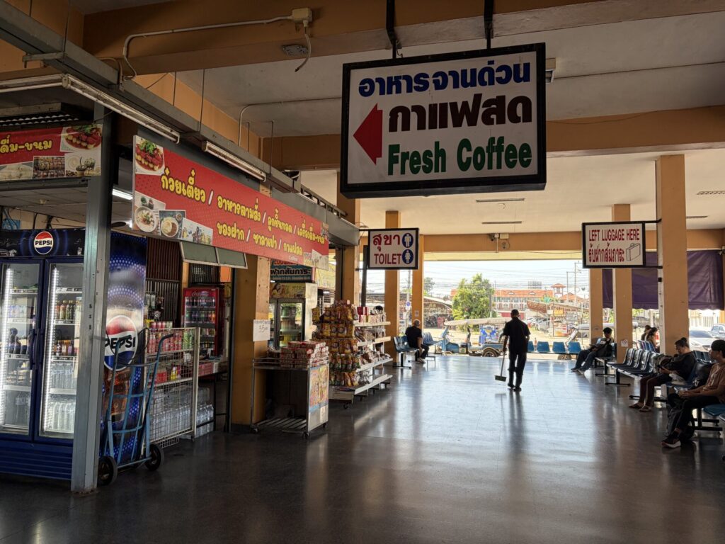 チェンライバスターミナル1は市内中心にあるので、バス乗車前の買い物や飲食は困らなさそう。バス停のお隣にはセブンもあり食料調達も可能。