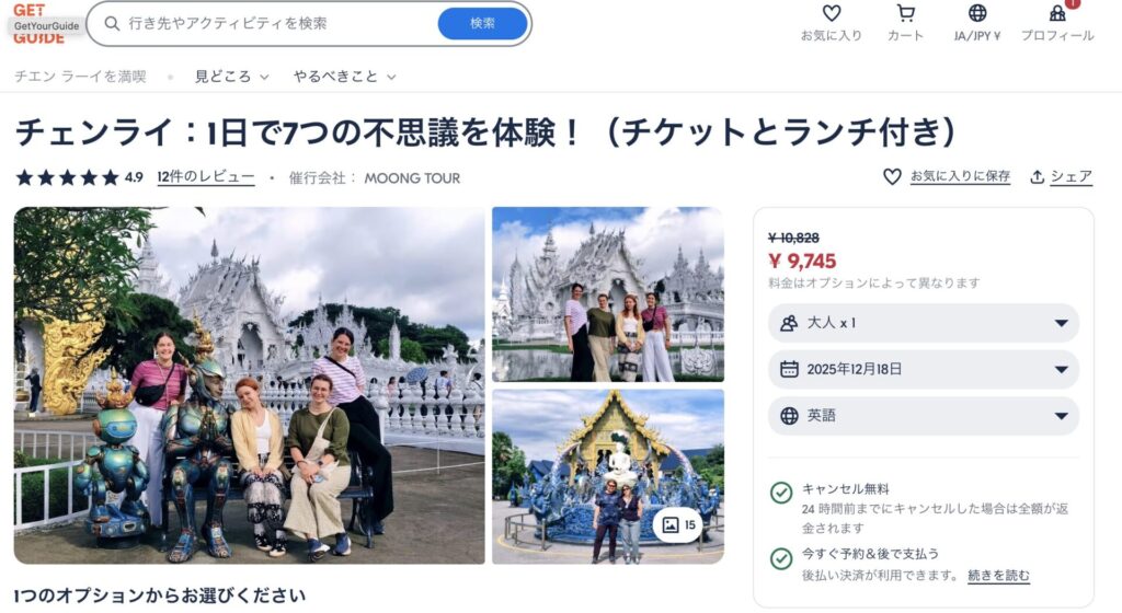 「GET YOUR GUIDE」上では、「Chiang Rai: 7 Wonders in One Day! (Tickets & Lunch Included) 」と表記されている。