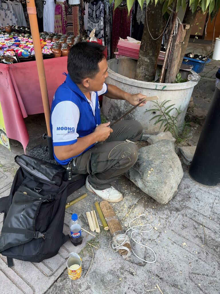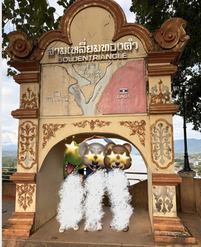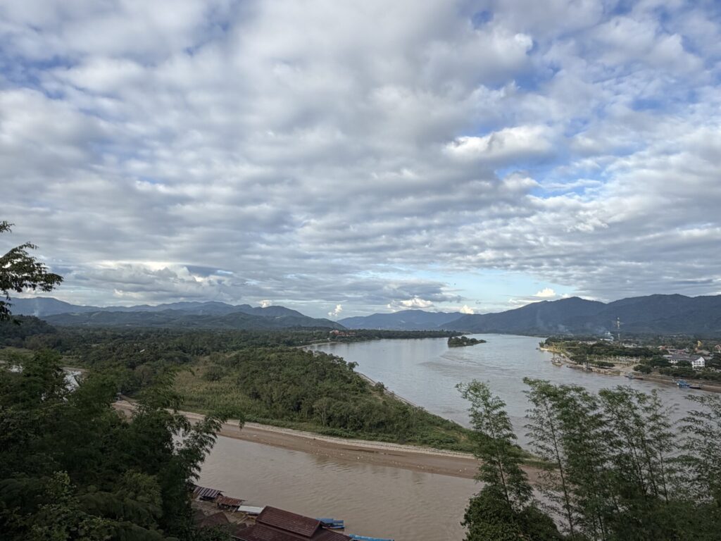ガイドのサニーさんは自分の休憩時間を割いてでも、竹でおもちゃを工作してくれた🥺💕 メコン川の向こうはラオス。だけど中国が作ったカジノで潤ってる街みたい。金ピカのカジノの建物を、「ラオスベガス」と教えてくれた。そしてメコン川を跨ってタイからラオスへ伸びる電力線も見た。これはラオスの電力だと、カジノの運営に足りないから、タイから電力を送っているそう。こういう豆知識GETできるのがツアー参加の醍醐味。