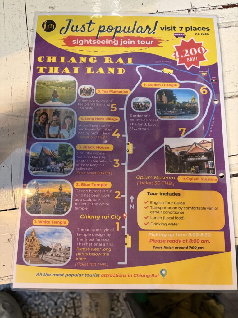 チェンライに来たけど、何すればわからな〜いって方は、ツアーで一気に観光地を巡るのがおすすめです。