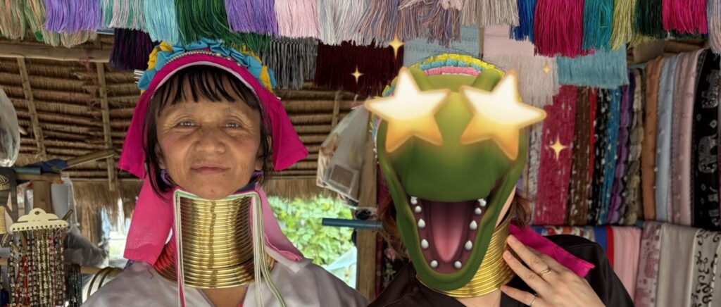ガイドさんがいてくれたおかげで、首長族の方とお話できたり、どんな生活されているか覗くこともできたけど、ここに個人できてたらただのお土産やさんとしか思えなかったであろう。