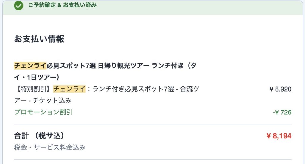 私が参加した時は、GET YOUR GUIDEではなくAgodaから予約しましたが、特別割引が効いて¥8,194でした。👇