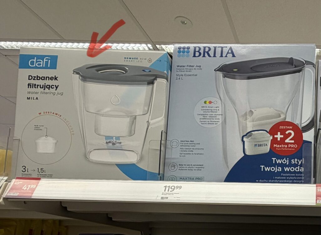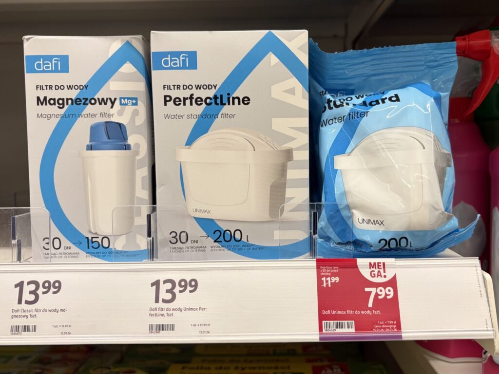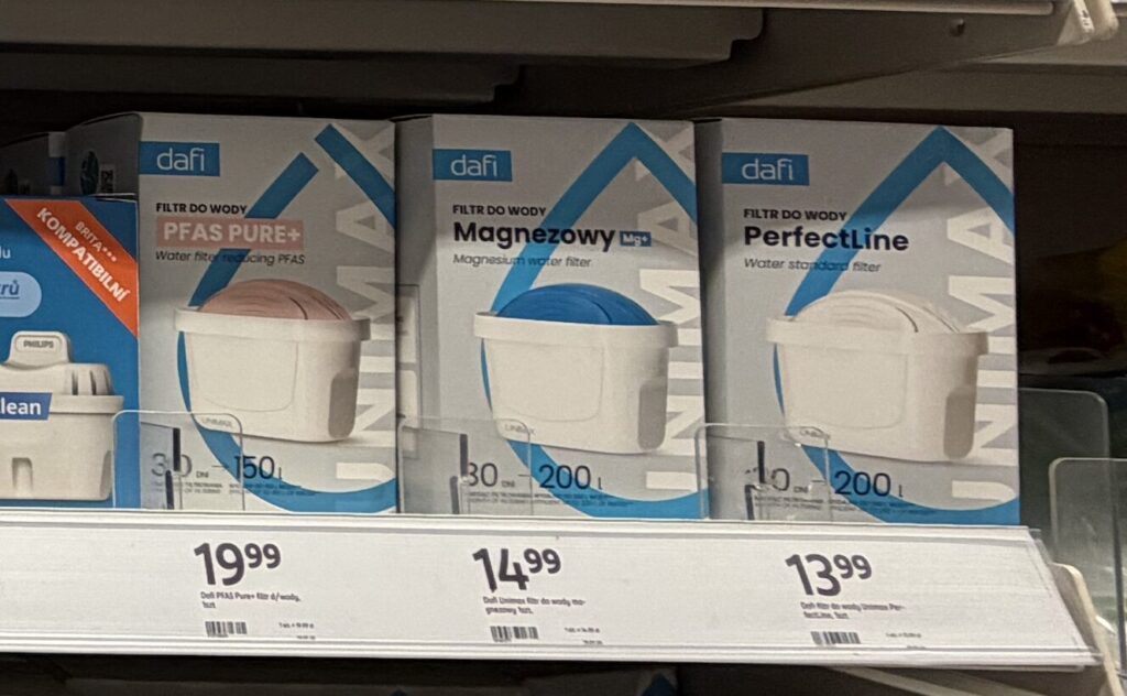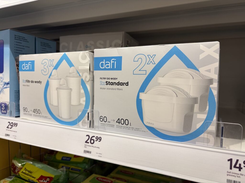 今回私が買ったのは、ポーランドの薬局「ROSSMANN」で少しお得になっていた「dafi(ダフィ)」というポーランド産の浄水器ブランドの浄水ポット。
