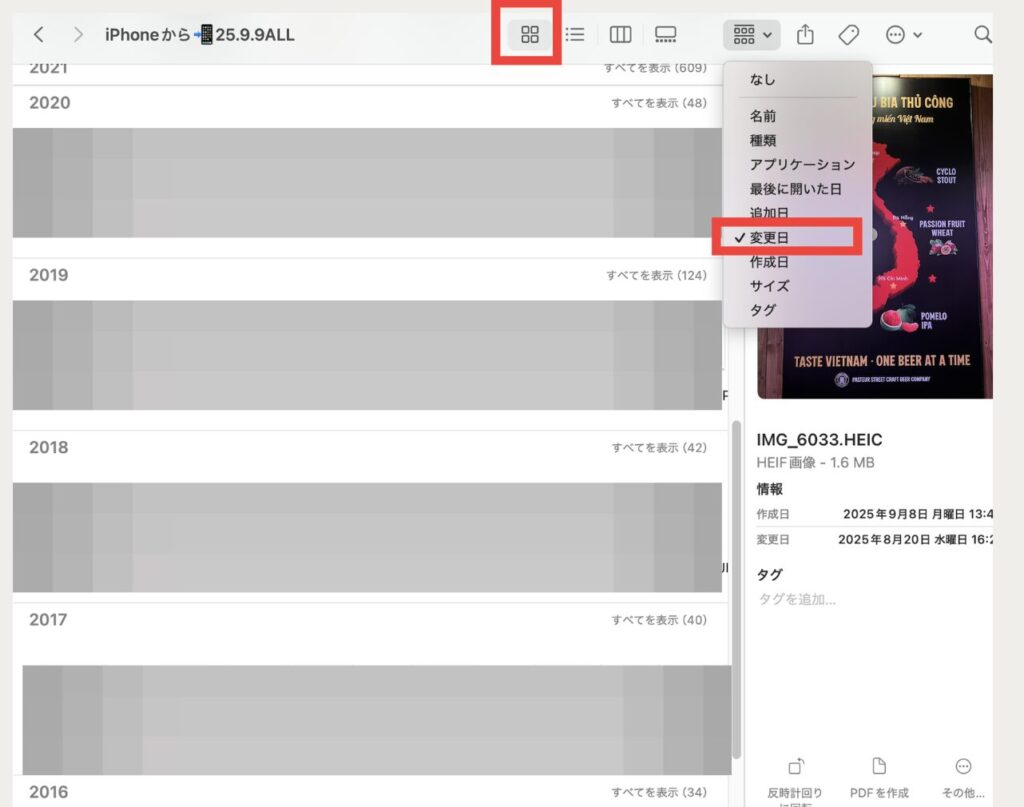 下記で、どうやって表示をすれば撮影日がわかりやすいか、説明します。