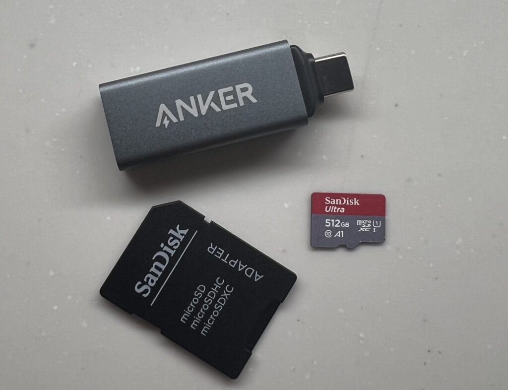 AnkerのUSB-CカードリーダーとSanDiskの512GB microSD。