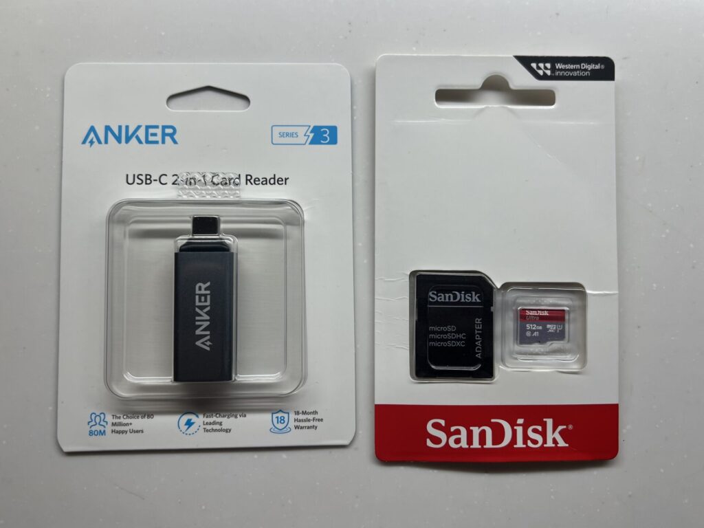 選んだのは、AnkerのUSB-Cカードリーダーと、SanDiskの512GB microSD。