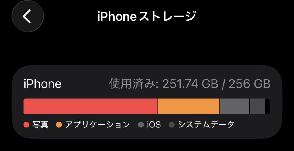iPhone本体の容量は256GBとそこそこ余裕のあるモデルを選んでいるものの、