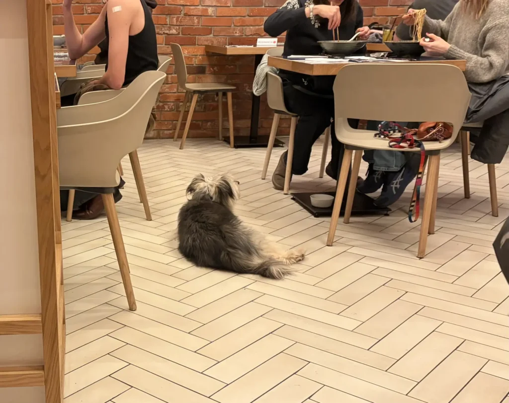 店内はわんちゃんもOKなお店が多いポーランド。この時は、結構ワンちゃん2匹が自由にしていました。