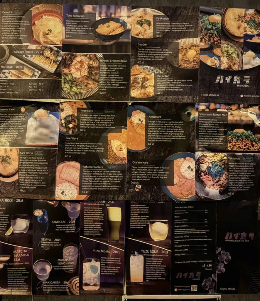 カツ丼 42ズウォティ(約1,800円)、チキンカレー 40ズウォティ(約1,700円)