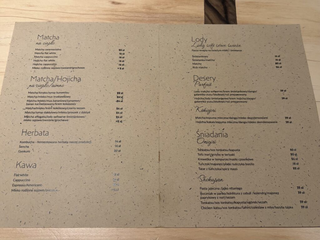 2024年後半にオープンした、ポズナン市内中心地の抹茶カフェ。近くのラーメン店「マダラ」とオーナーが同じという情報あり。