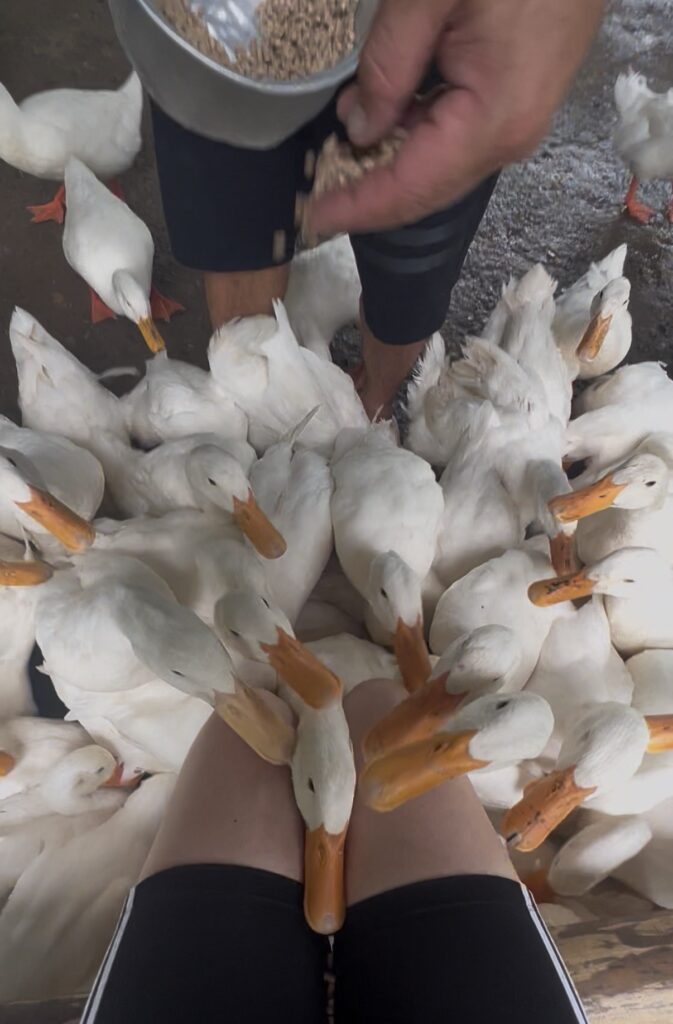 足元やお腹に、餌をまかれて、アヒルに集られる独特の体験。