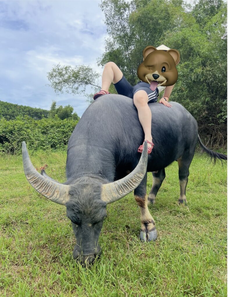 水牛って臭いのかなあとか、泥がついているのかなあと思ったけど、ドナルド・トランプ君はとても清潔にお手入れをしてもらっていて、触ったり乗せてもらったりするのが心地よかったです。