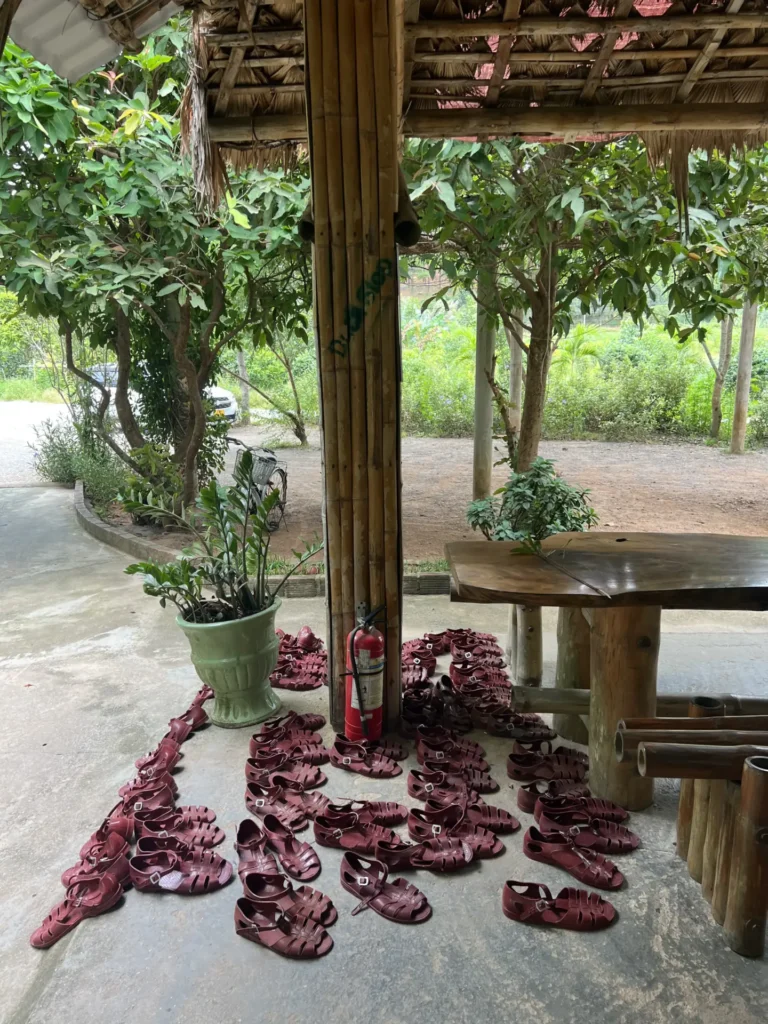 施設内では、サンダル・ベトナムの伝統的麦わら帽子「ノンラー」の無料貸し出しの他、体験終了後にホースで水をかけてくれた後にタオルも貸してくれました。手ぶらで参加OK!