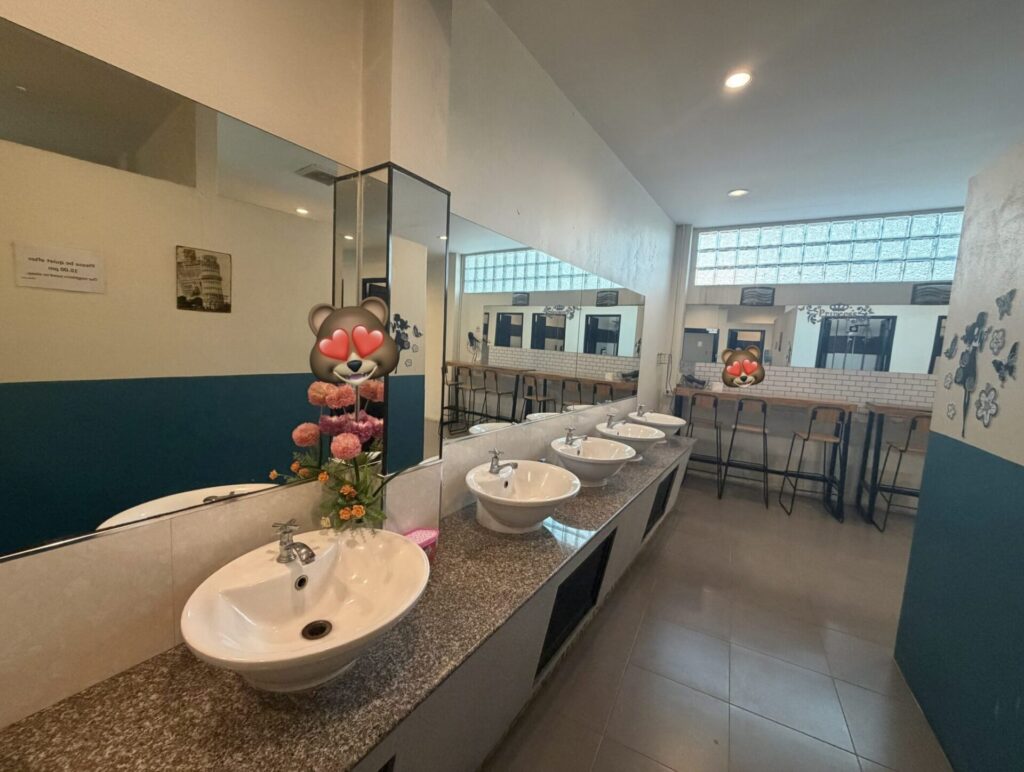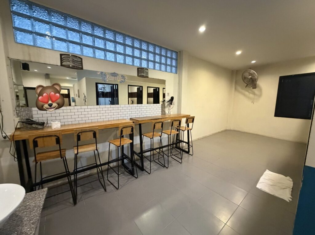 ✅奥には、座ってお化粧や、ヘアドライヤーを使える鏡付きのカウンター席あり。ここまで充実しているゲストハウスは本当に貴重!