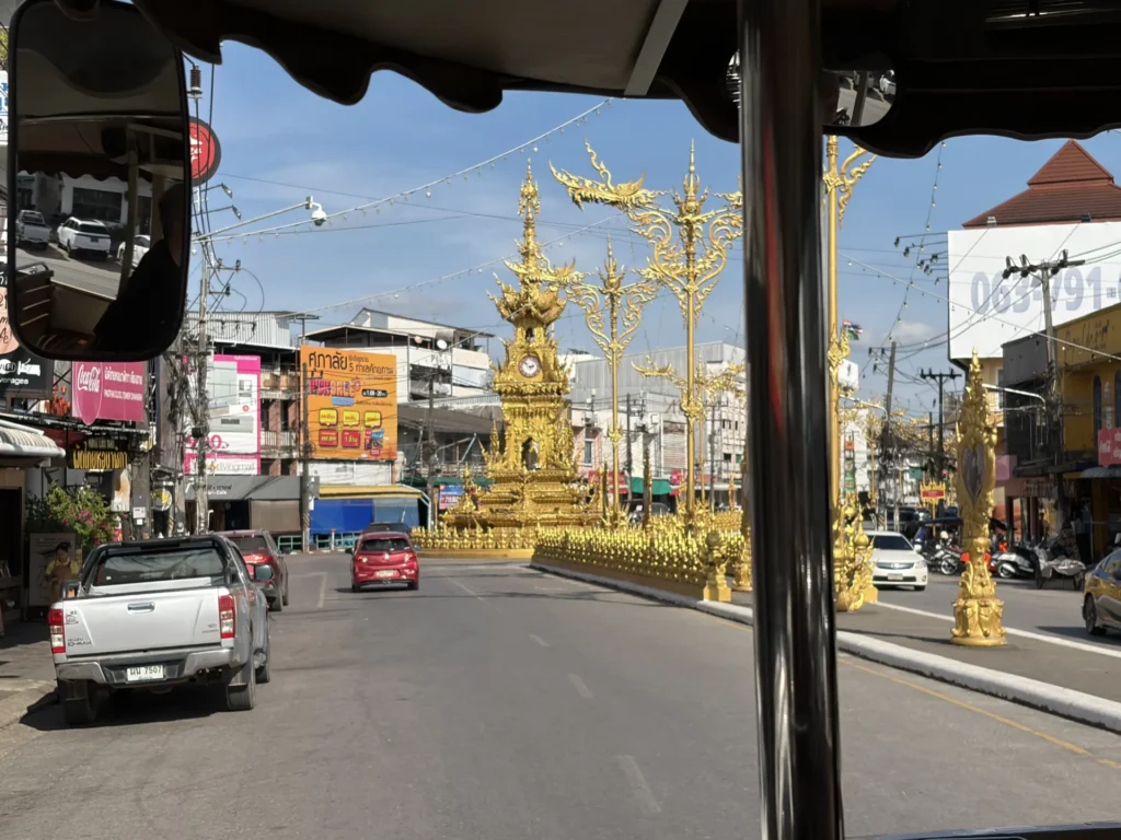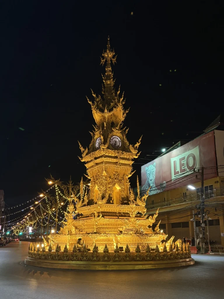 チェンライの中心地にある、金ピカの時計台「チェンライ時計塔」。