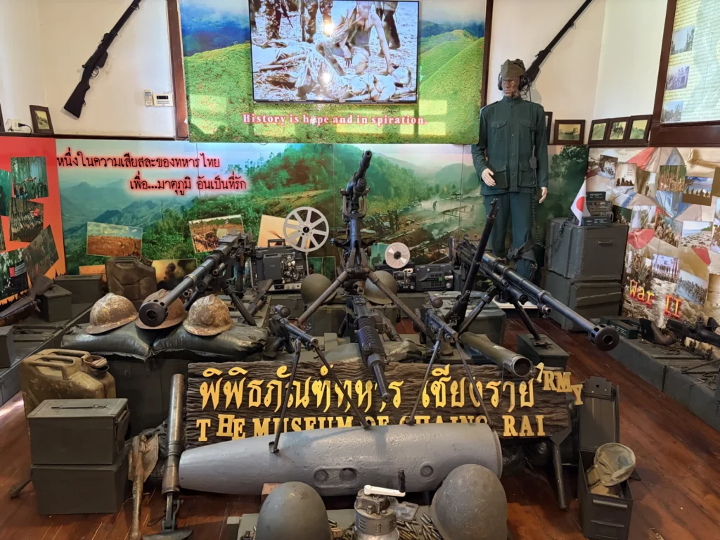 第二次世界大戦の戦闘の歴史と解説、日本から贈られた武器などが展示されている。