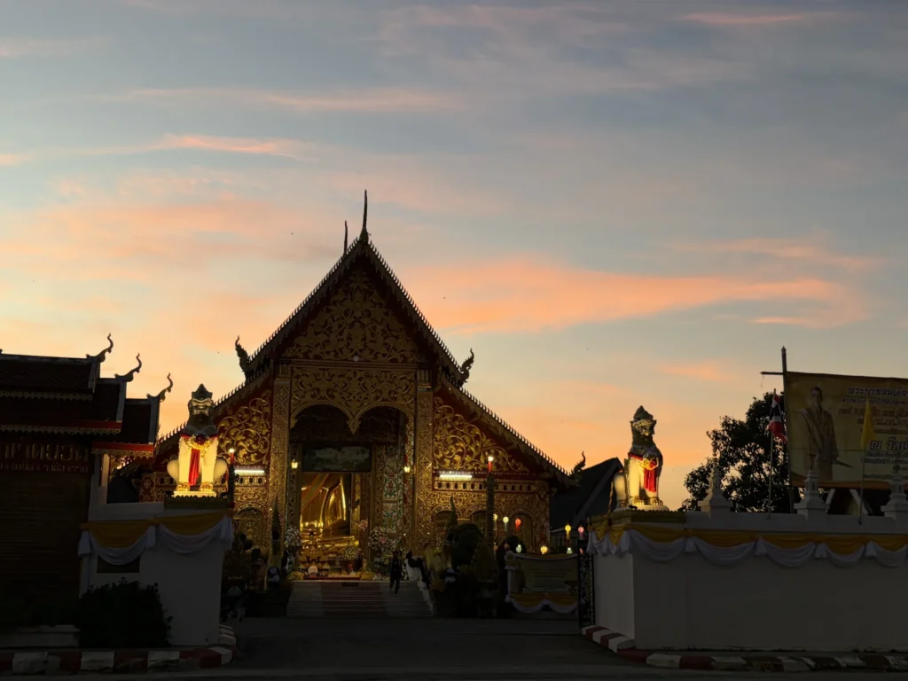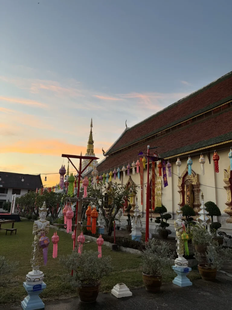 宿の近くのお寺「ワット チェットヨート」で夕焼け鑑賞